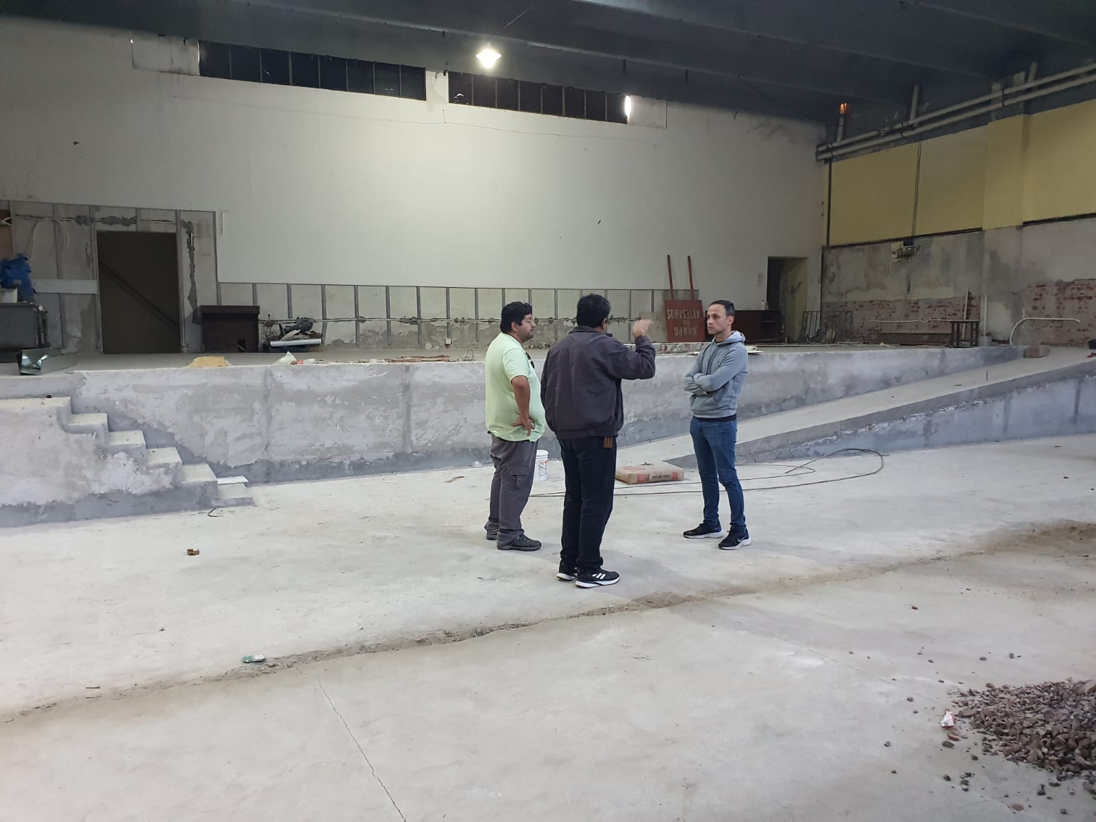 El jefe comunal recorrió las instalaciones tanto en el sector del auditorio como en el sector del primer piso, donde dialogó con los encargados de la obra interiorizándose de los trabajos que se realizan en las distintas etapas que contempla la obra.