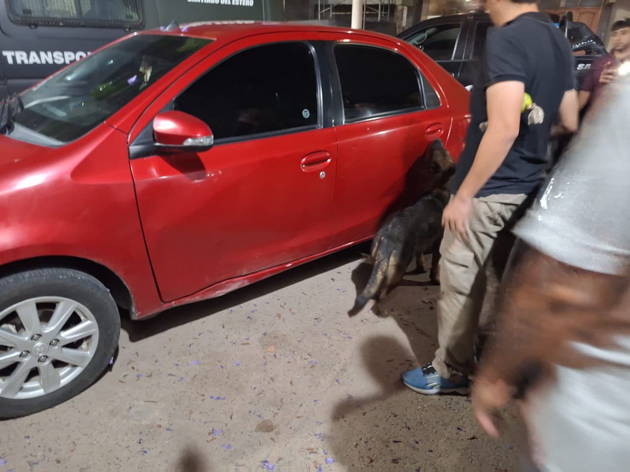 De esta manera y con datos precisos, en horas de la noche interceptaron un automóvil Toyota Etios color rojo que se encontraba por inmediaciones de Av. Belgrano y Necochea de la ciudad de La Banda, con tres ocupantes.