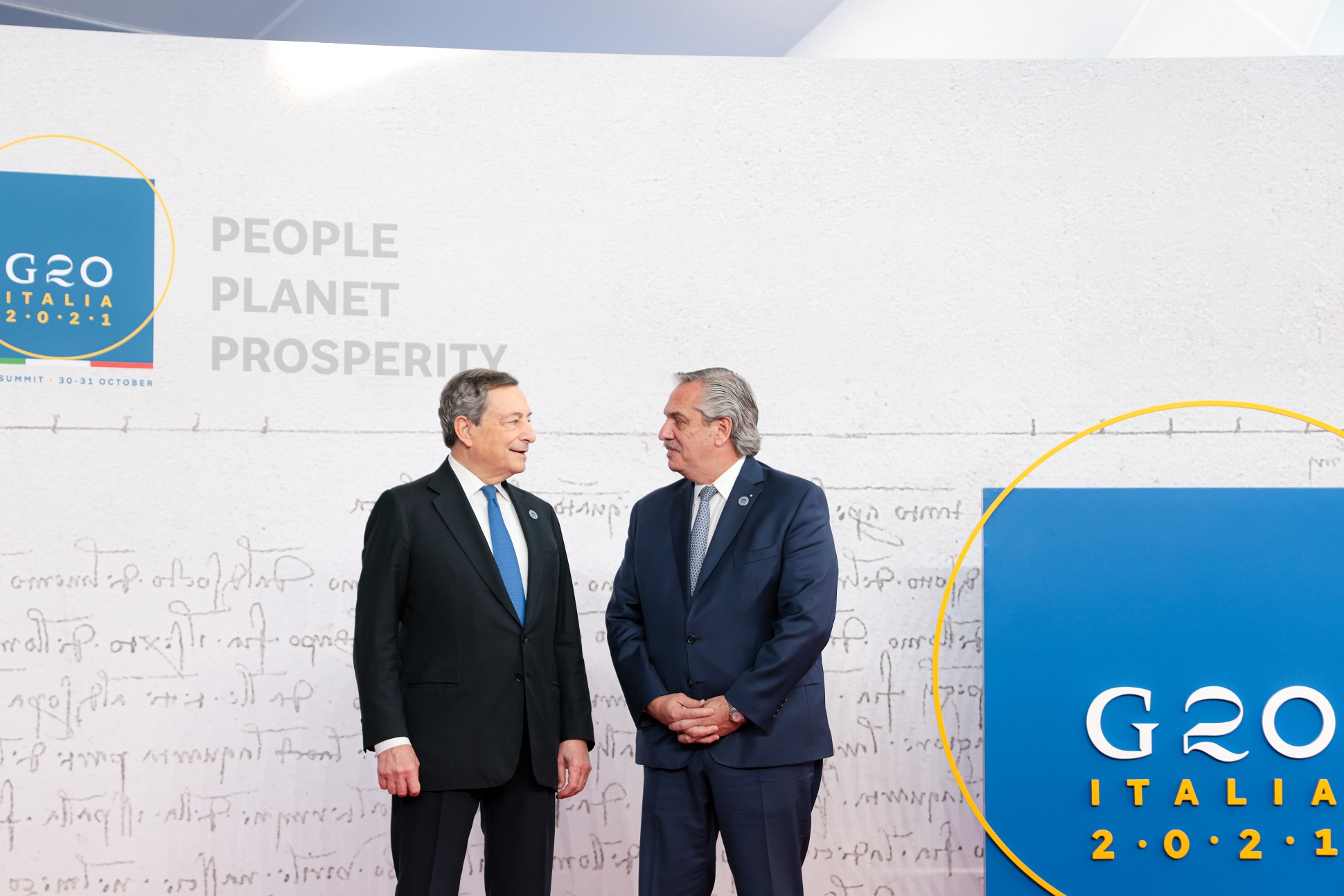 Allí fue recibido por el presidente del Consejo de Ministros de Italia, Mario Draghi, quien encabezará las sesiones de la Cumbre, que estará centrada en analizar la situación económica y sanitaria global post pandemia, así como la crisis del cambio climático.