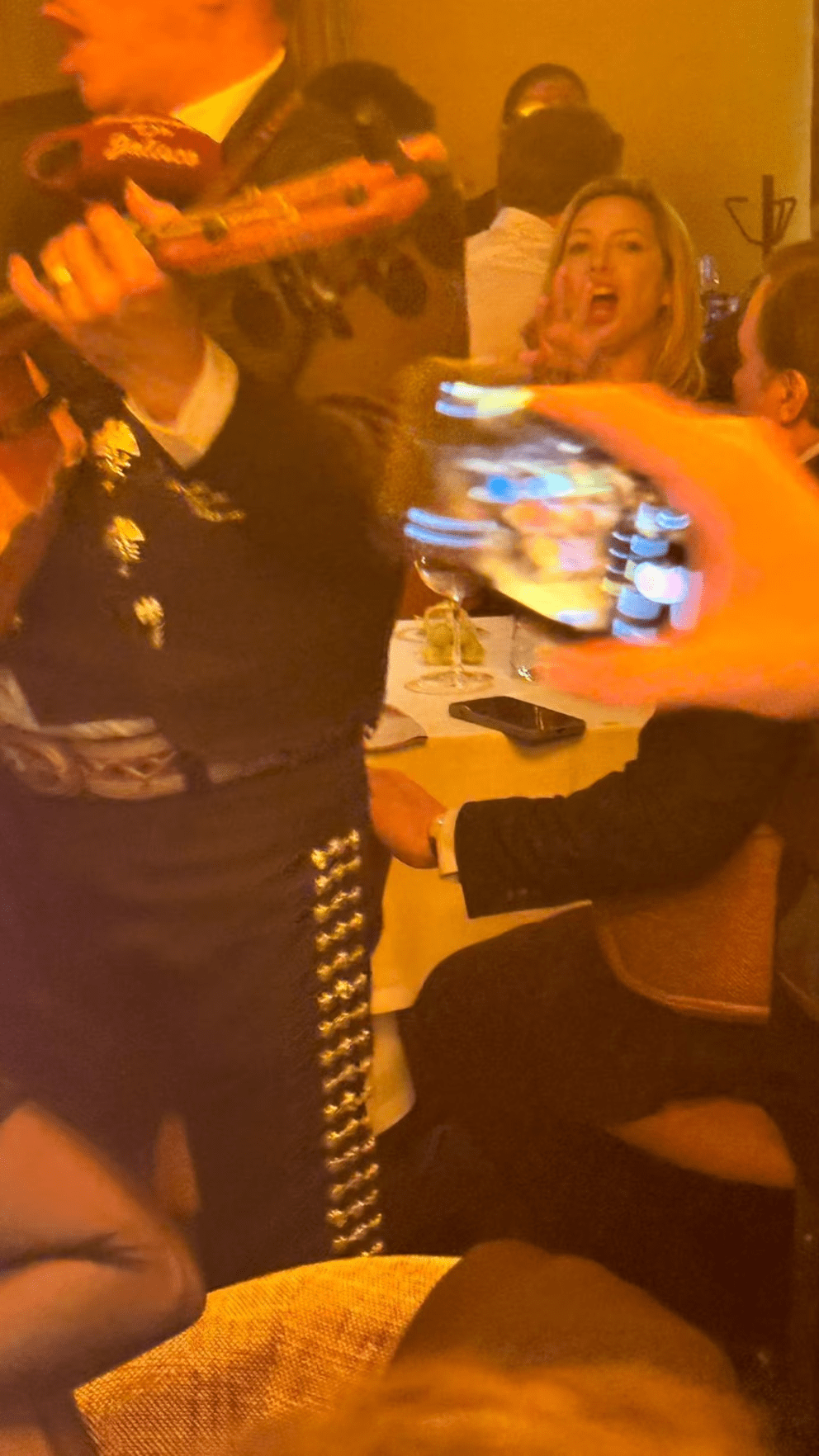 Yañez celebró el año nuevo en Madrid, en el selecto restaurante “La Única”. En las imágenes se la observa disfrutando de un espectáculo de Mariachis, rodeada de hombres en su mesa, alguno de los cuáles serían los efectivos que puso a su disposición el Estado argentino.