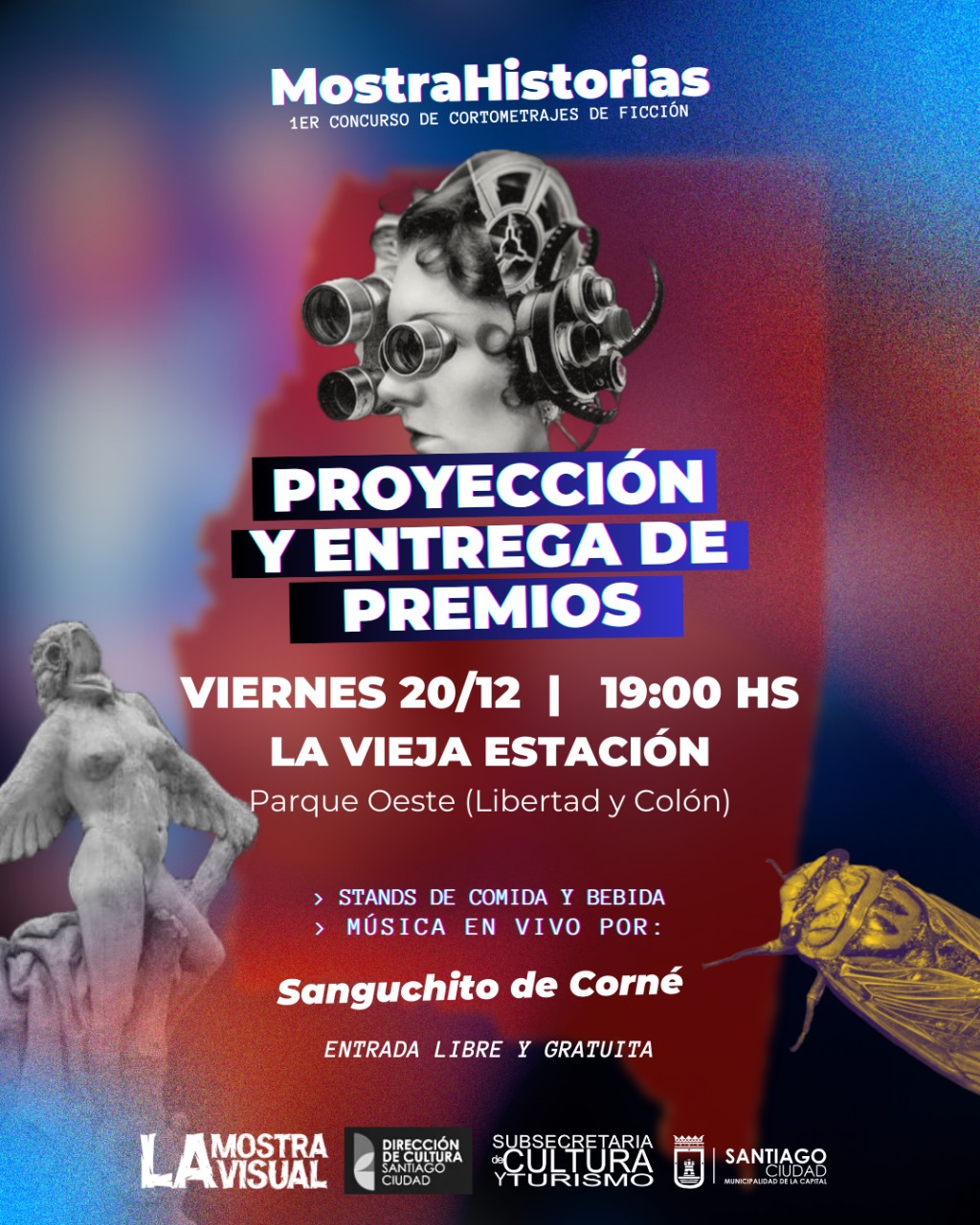 La Mostra Visual, en conjunto con la Dirección de Cultura de la Capital, invita a la comunidad a la proyección y premiación del Concurso de Cortometrajes “MostraHistorias”, que se llevará a cabo el viernes 20 de diciembre a las 19 horas en la planta alta de la Vieja Estación del Parque Oeste (Colón y Libertad).