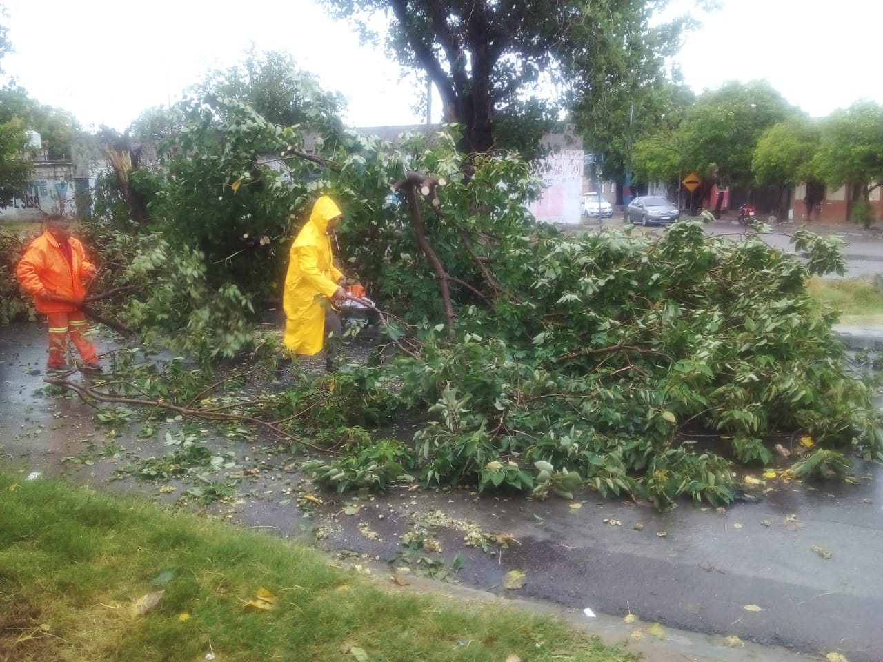 Los operarios realizaron tareas de despeje de calles por caídas de árboles, desobstrucción de alcantarillas e imbornales de calles, desagotes, relevamiento de viviendas, entre otras tareas.