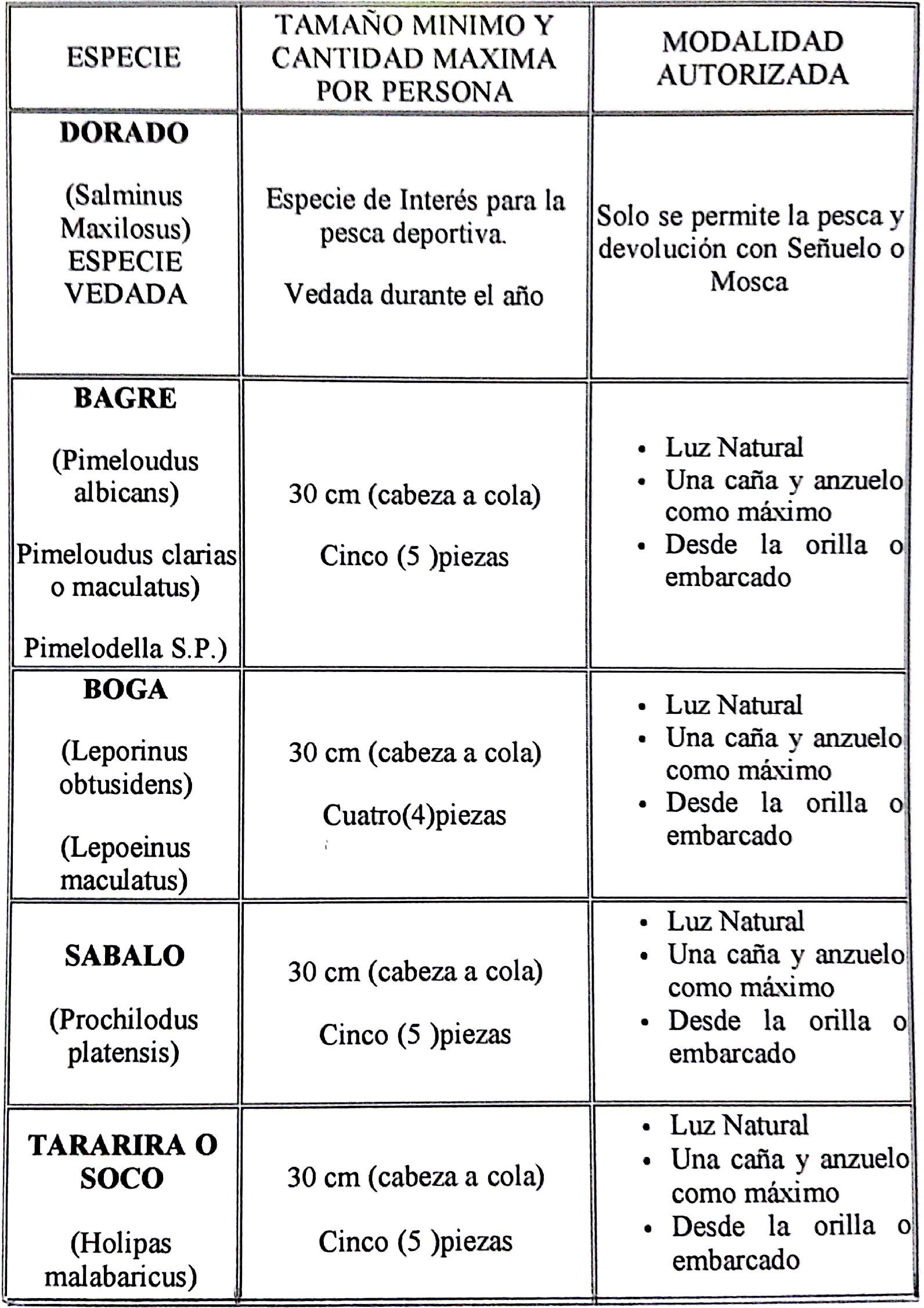 La Dirección de Bosques y Fauna, dependiente del Ministerio de la Producción, Recursos Naturales, Forestación y Tierras de nuestra provincia, aprobó en el día de la fecha, la reducción del cupo de extracción de peces de las diferentes especies, con fundamento en el uso sustentable y racional de los Recursos Icticolas. Entre las limitaciones se destaca que solo se permitirá un máximo de piezas variadas de diez (10), por excursión desde la orilla o embarcación.