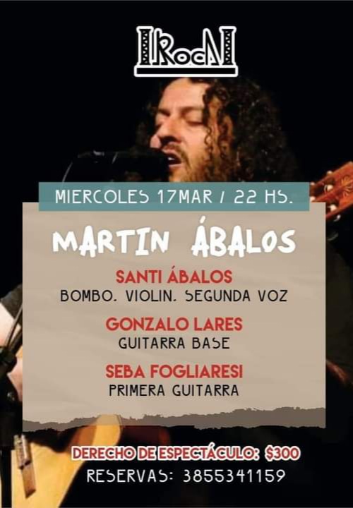 22 hs. MARTÍN ÁBALOS con SANTI ÁBALOS, GONZALO LARES y SEBA FOGLIARESI, en La Roca Pub, Av. Roca y Urquiza. 22 hs. SAN PATRICIO “La Revancha” en Antares Bar Cervecería, Pellegrini 480.
