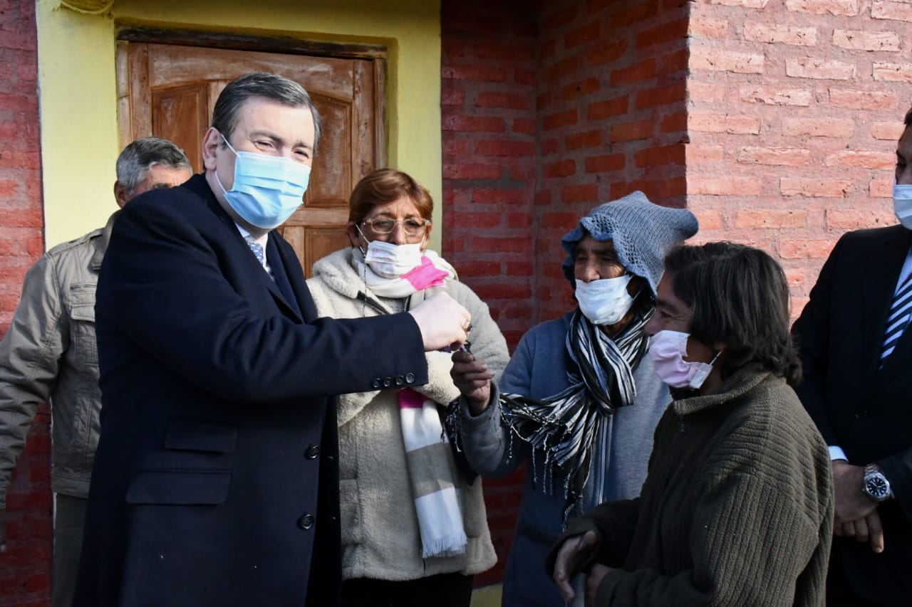 También entregó viviendas sociales a familias de esta zona del noreste del departamento Banda, a 67 km de la ciudad cabecera.